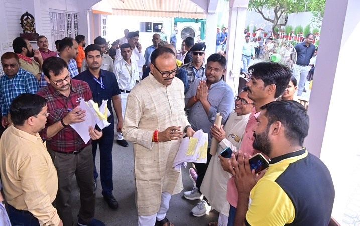 दिनांक 23 June, 2025 को लखनऊ स्थित अपने आवास पर प्रदेश के विभिन्न क्षेत्रों से आये आगंतुकों से मुलाकात कर उनकी समस्याओं को सुना एवं समस्याओं के त्वरित निराकरण हेतु संबंधित अधिकारियों को आवश्यक दिशा-निर्देश देते हुए।